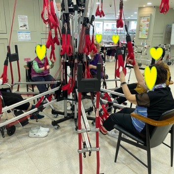 – 재활 기구를 이용해서 어르신들이 선생님의 지도하에 어르신의 상태에 맞춰서 재활운동을 매일 진행 합니다.